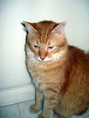 I'm really good at being orange, so that was all it took, and wham I was in a new house with a great big grey and white guy named Mac and a sweet little calico gal named Tidbit.